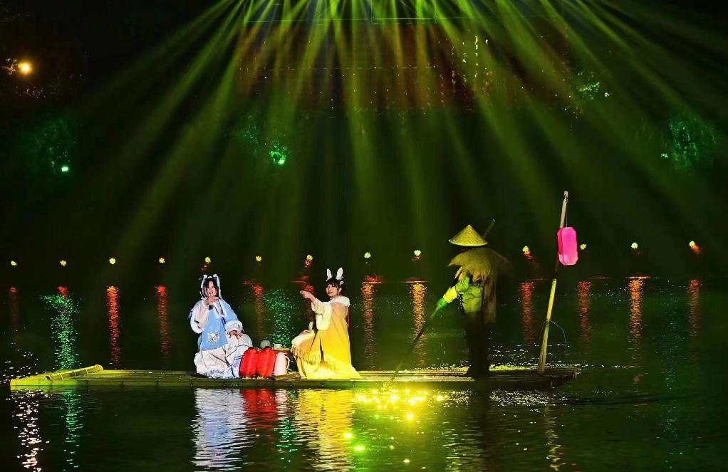 四川洪雅县柳江古镇“夜游柳江”实景演出现场。(洪雅县委宣传部供图)