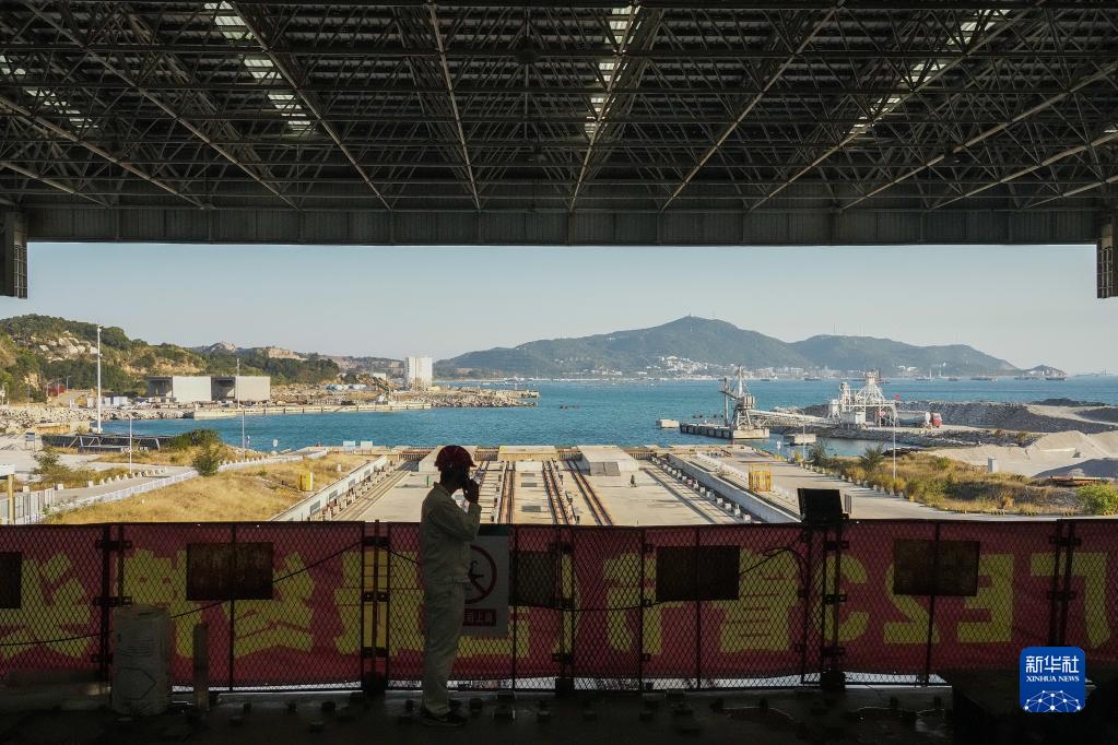 在中交四航局珠海牛头岛沉管智慧工厂,施工人员进行深中通道海底隧道最后一个管节(非标准管节、含最终接头)浇筑工作(1月30日摄)。