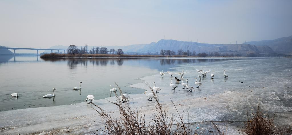据悉,甘肃位于中亚-印度和东亚-澳大利亚两条国际鸟类迁徙线路上,是国际重要的水鸟越冬、繁殖栖息地和迁徙停歇营养补给地。张立勋表示,大天鹅在甘肃越冬种群数量为1009只,较2022年越冬种群的815只多了近200只。尤其是黄河兰州段大天鹅越冬种群数量达到26只,为5年来种群数量最多。