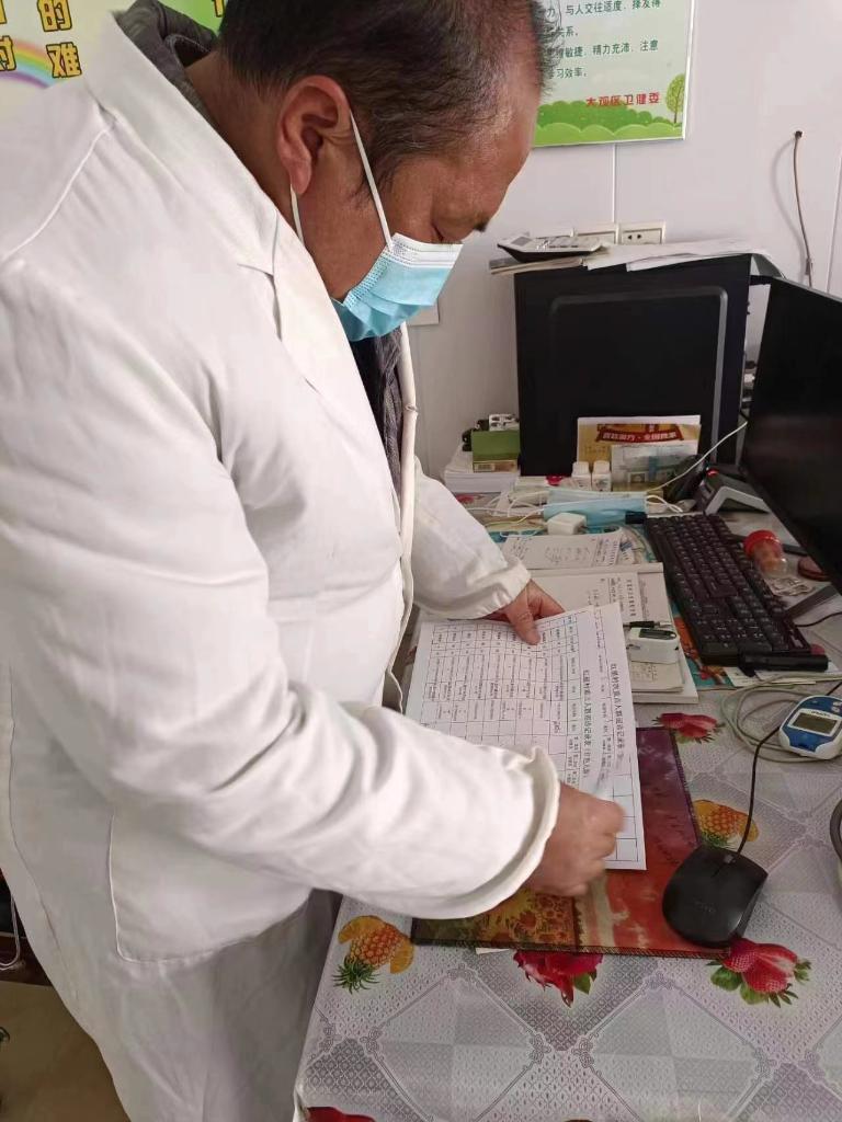 在红星村,甘攀峰和村“两委”同志一起,对全村1000多户居民的健康状况进行了梳理,为57名需重点关注健康状况的村民建立了“健康台账”。“我们根据年龄和患基础病情况,对重点人群进行红色、黄色标识登记,每3天上门一次给他们检查血压、血糖和血氧等。”甘攀峰说,“村民还可以随时拨打电话求医,我随时准备着上门看病送药。”