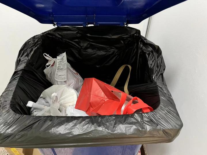图为午后北京王府井一处写字楼内的垃圾桶。(受访者供图)