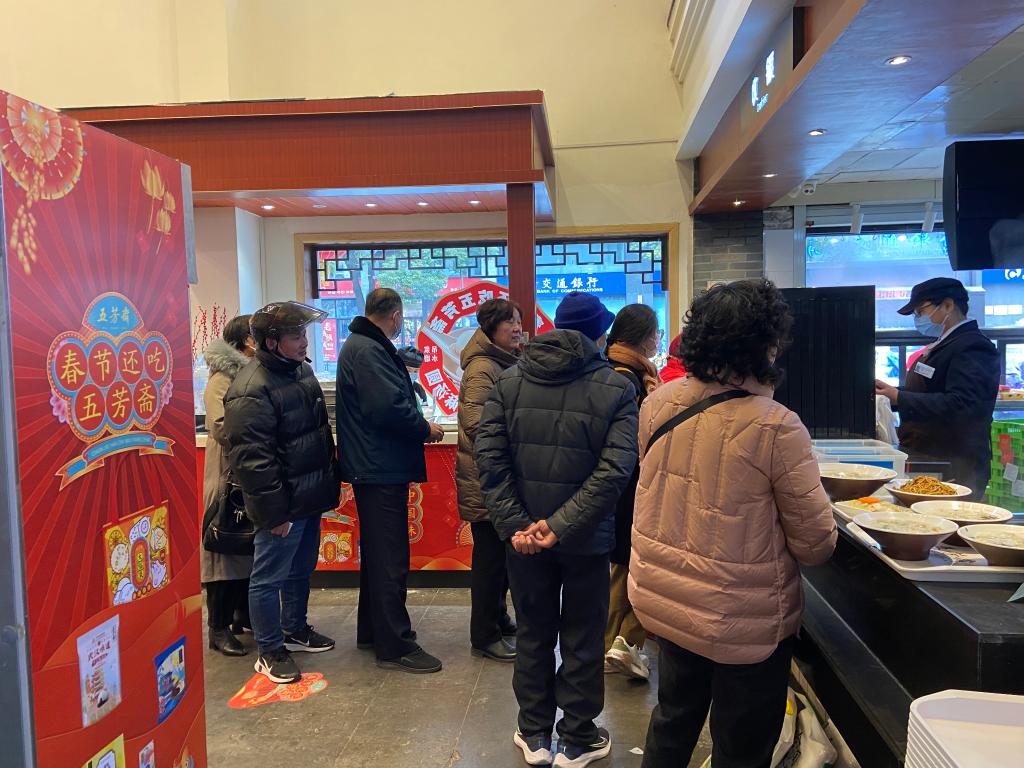 元宵节前夕,浙江省嘉兴市五芳斋总店内的食客络绎不绝。(受访者供图)