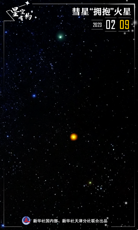 新华社天津2月9日电(记者周润健)近期,C/2022 E3彗星备受关注。天文预报显示,2月11日这颗彗星将与火星“擦肩而过”。这两个天体在星辰大海中“拥抱”会擦出怎样的火花?如果天气晴好,我国感兴趣的公众不妨“拭目以待”。