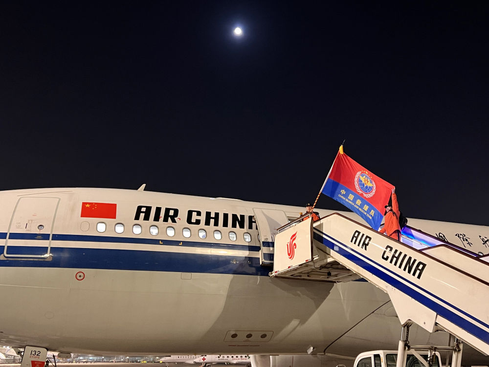 ↑2月7日,中国救援队队员登上国航包机,从首都机场出发飞赴灾区(手机拍摄)。