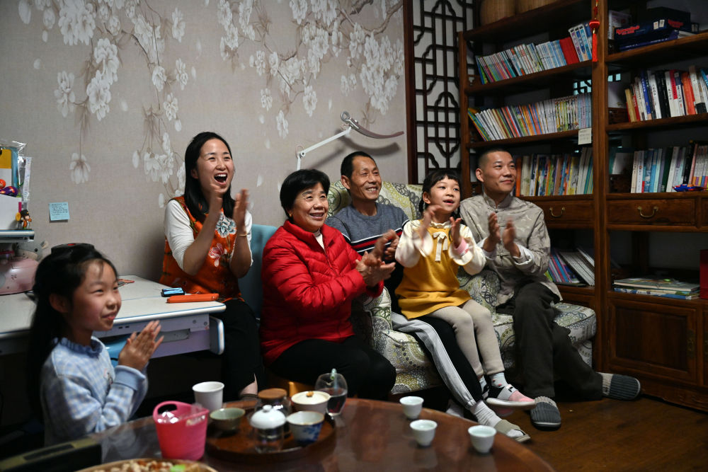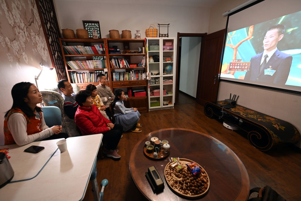 马保利与家人一起收看《2023中国诗词大会》决赛。