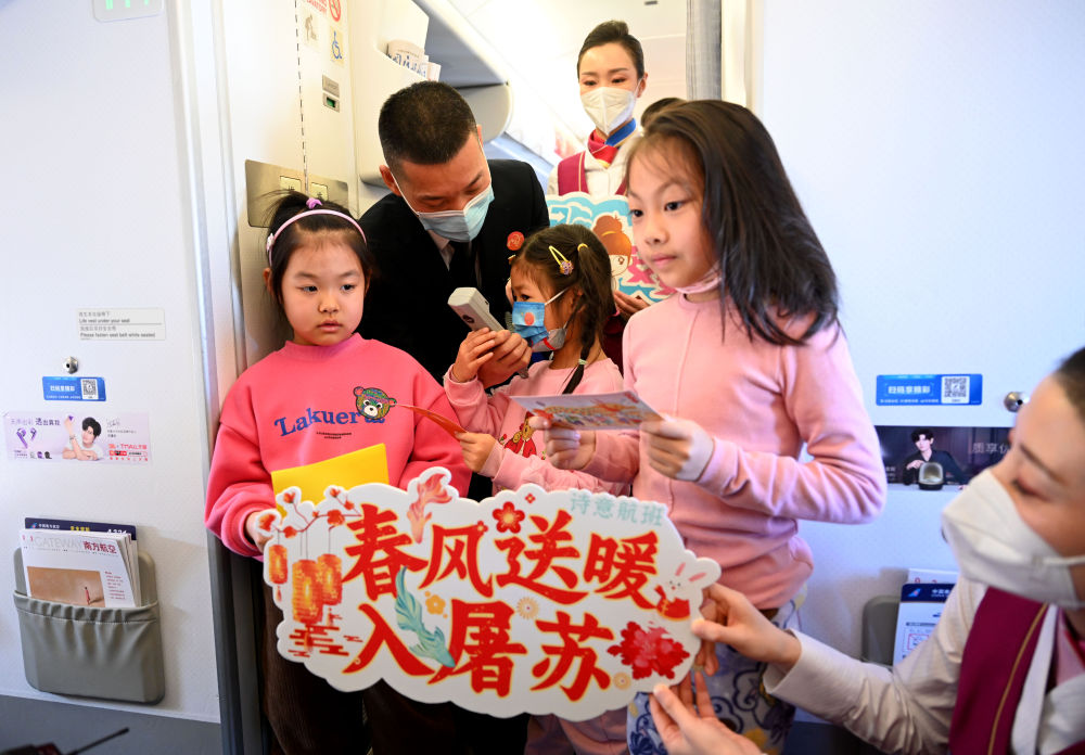 马保利在飞机上与乘客以“春”为题玩“飞花令”。