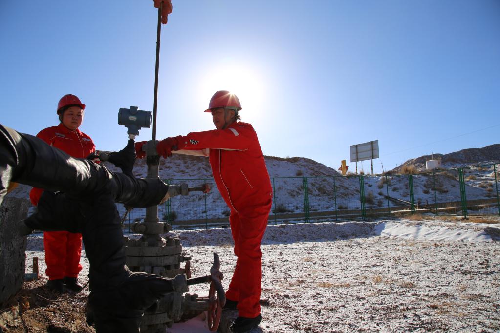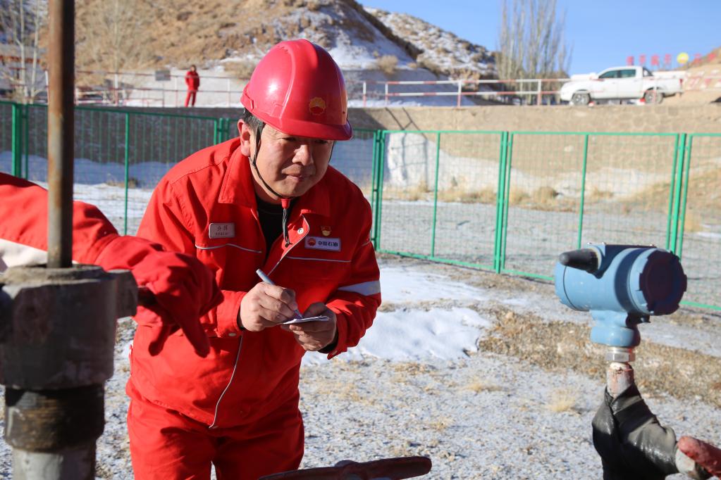 立春已过,玉门油田老君庙采油厂所在的祁连山南麓依旧天寒地冻。天刚微亮,山野苍茫,其间一小片鲜艳的红色格外显眼。那是身着红色工作服的603岗岗位长许辉和他的同事们,此刻他们已经开完了班组会,正冒着严寒执行当天的巡井任务。