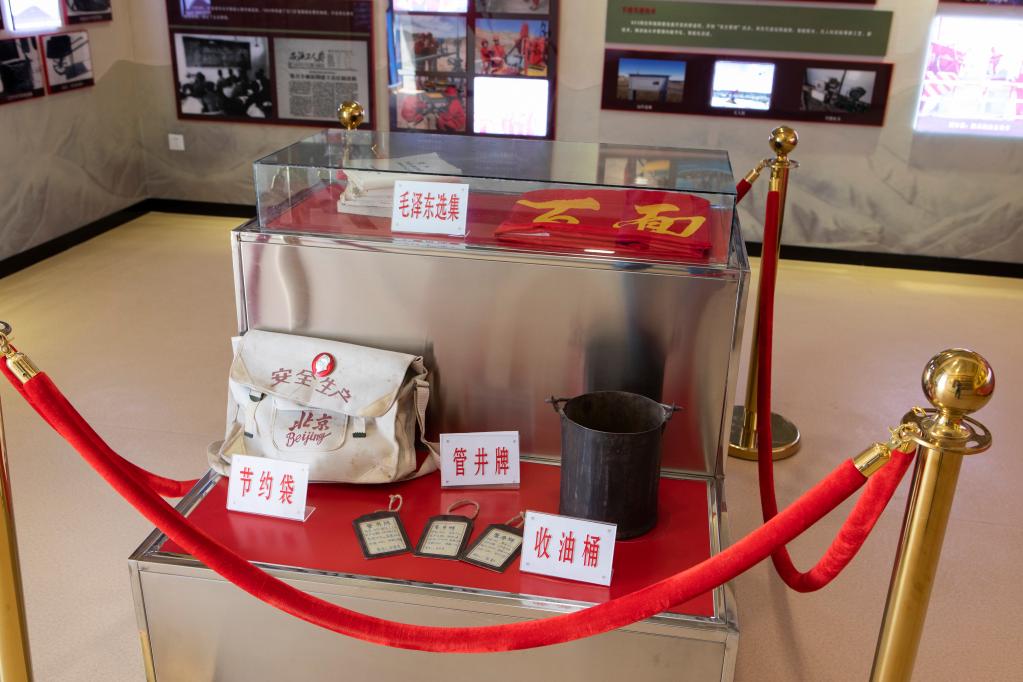在603岗位作业区展览室,五件“传家宝”吸引着参观者目光,其中包括一个陈旧的节约袋,一个带有锈迹的收油桶。