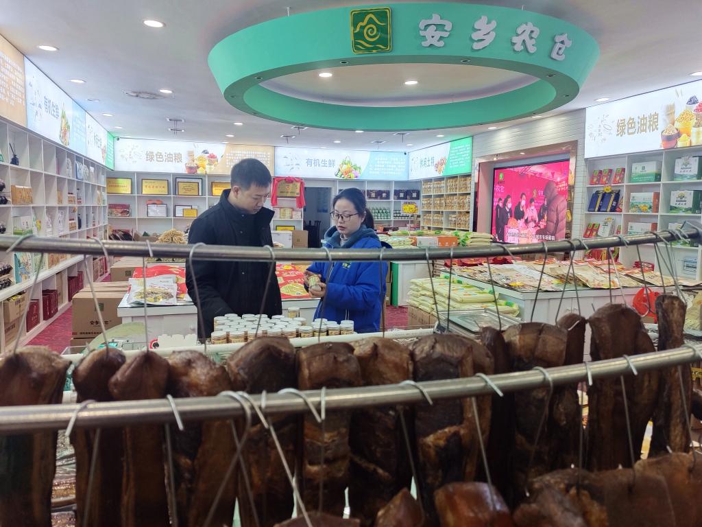 “安乡农仓”直营店店员向消费者介绍产品。新华社记者周勉 摄