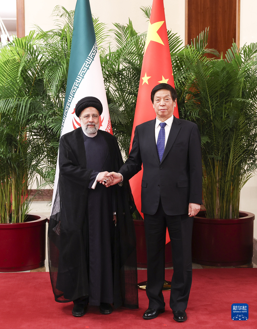 2月14日,全国人大常委会委员长栗战书在北京人民大会堂会见伊朗总统莱希。新华社记者 庞兴雷 摄