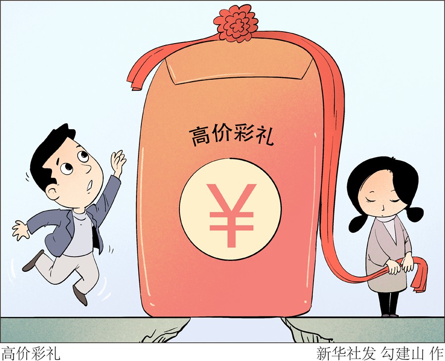 一些农村地区存在“条件越差彩礼越高、家里越难彩礼越高”的现象,个别家庭甚至“因婚致贫”。还有的家庭囿于重男轻女的落后观念,将嫁女所得的彩礼用于给儿子娶媳妇,形成区域性彩礼金额越涨越高的恶性循环。现实中,高价彩礼屡屡引发社会问题。或让适婚青年“谈婚色变”,或让本应喜结连理的男女情感破裂,甚至反目成仇直至引发刑事案件,上演“人财两空”的悲剧。即使成婚,高价彩礼也埋下了矛盾隐患,加剧了双方的不平等地位,进而影响到家庭关系和夫妻情感,让尚未稳定的婚姻关系平添变数。