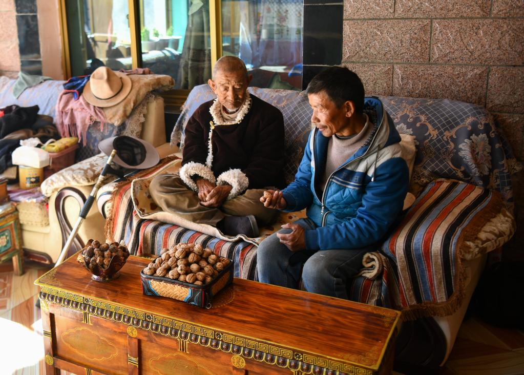 核桃是山南市加查县拉岗村村民家里最常见的美味(2月1日摄)。新华社记者格桑边觉 摄