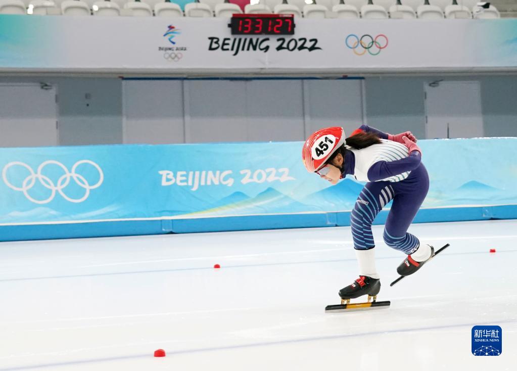 2023年2月4日,张骞予在国家速滑馆参加“冰丝带”市民速度滑冰比赛。新华社记者 张晨霖 摄