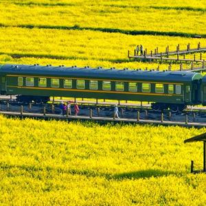 那就搭乘着这趟列车,钻进这花海中央,听着蜜蜂们歌唱、闻菜花的蜜香,将春天的璀璨印刻在一扇扇车窗上。