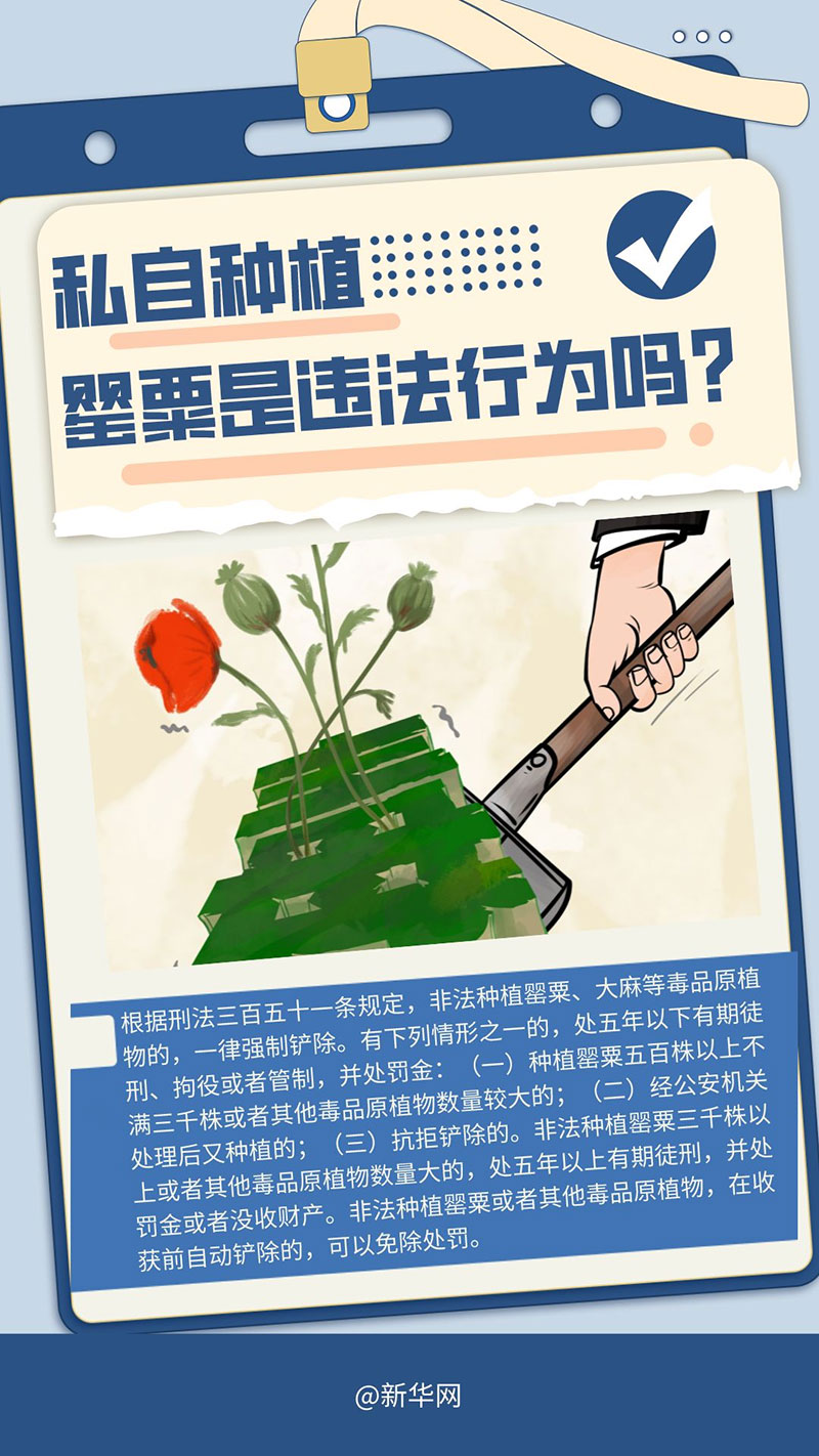 22日,“女子宿舍吃火锅放罂粟提味被罚”的新闻登上热搜,引发网友对罂粟相关法律知识的广泛关注。罂粟知识您了解多少?可以私自种植吗?本期法治课代表带你一起答题,让我们一起做禁毒达人。