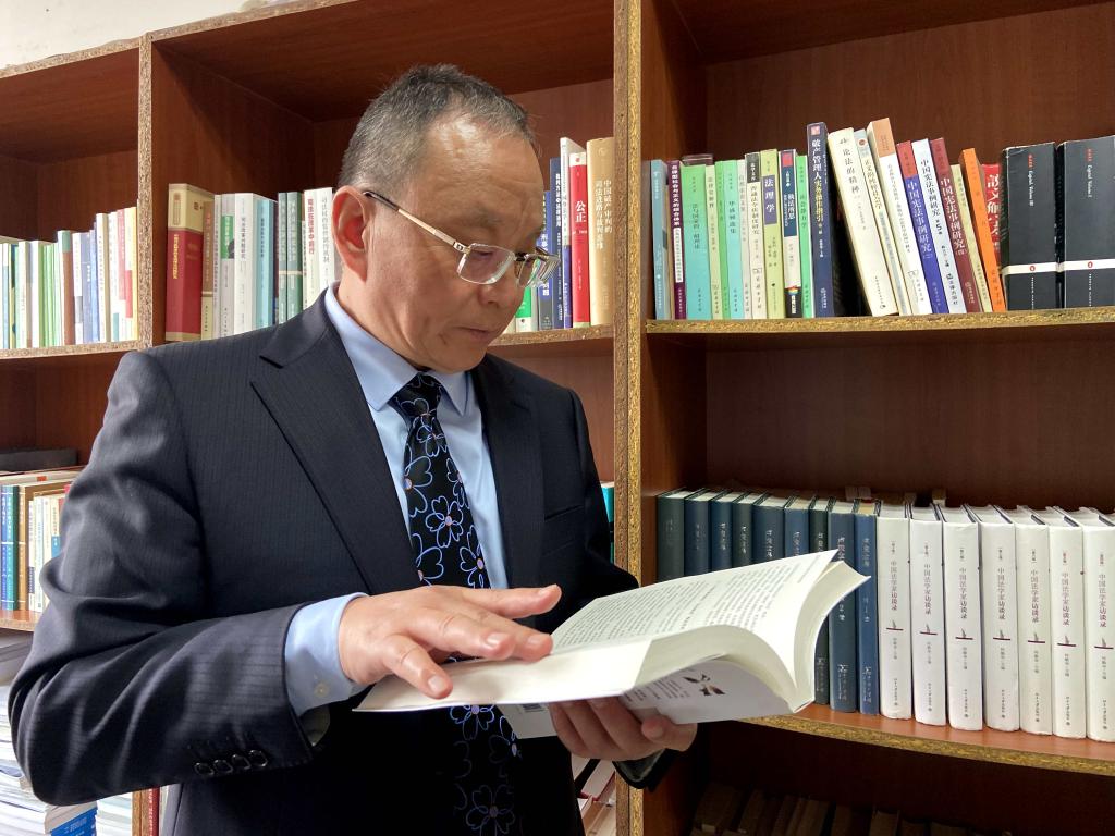 2月23日,汤维建在办公室翻阅法律书籍。新华社记者魏梦佳 摄