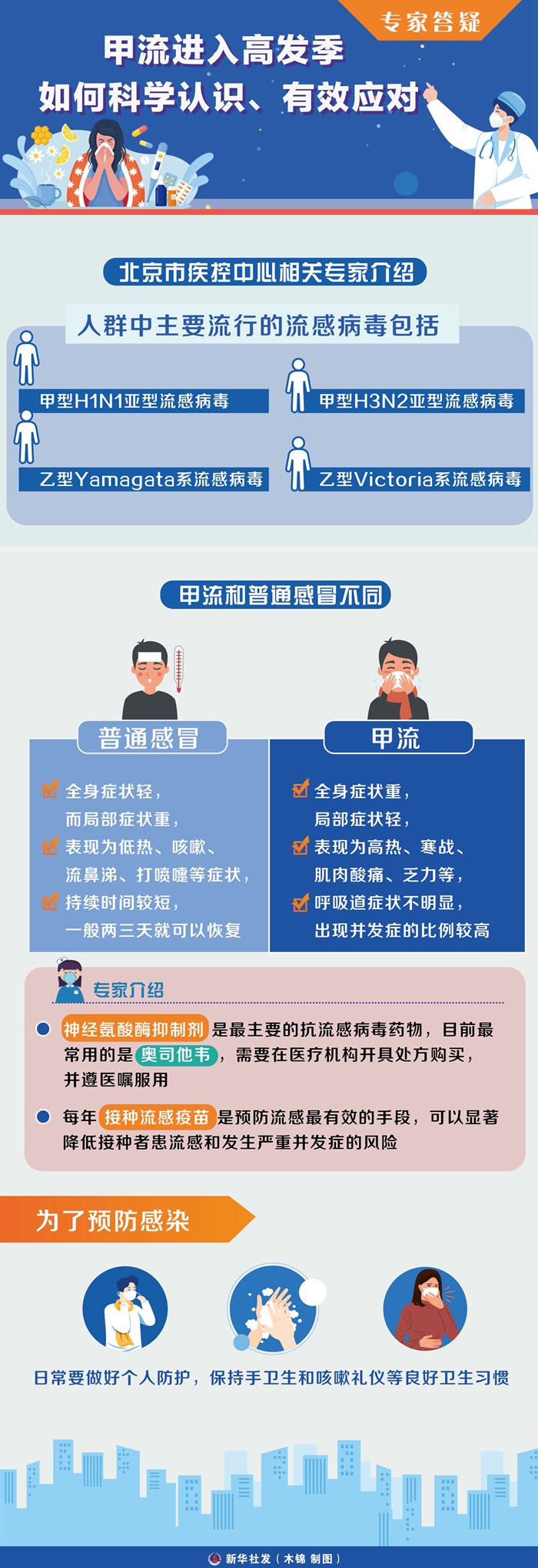 “每年接种流感疫苗是预防流感最有效的手段,可以显著降低接种者患流感和发生严重并发症的风险。”徐保平说,尽管疫苗接种是预防流感病毒感染最好的方法,但在流感暴发时,不能采用疫苗预防的人群可采用药物预防,即对符合预防性用药指征的人员,建议在医师指导下尽早服用奥司他韦。