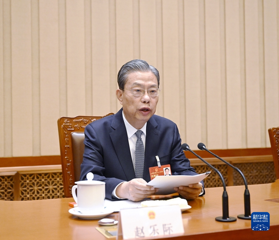 3月9日下午,十四届全国人大一次会议主席团在北京人民大会堂举行第四次会议。主席团常务主席赵乐际主持会议。新华社记者 饶爱民 摄