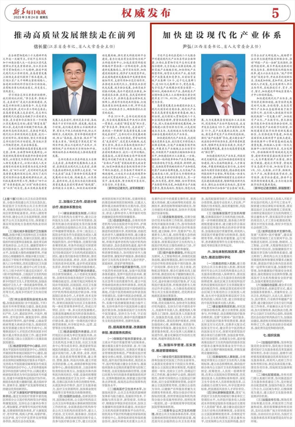 加快建设现代化产业体系,数字经济是强劲动能。数字经济发展是时代大潮、全球趋势,未来没有哪个产业和业态能够游离于数字经济之外。我们深入推进数字经济做优做强“一号发展工程”,加快数字产业化、产业数字化,重点推进数字技术和实体经济融合创新,促进不同类型产业的数字化转型,积极创建国家数字经济创新发展试验区。扎实推进数字基建,加快南昌国家级互联网骨干直联点建设,推动数据中心等新型基础设施高质量发展,积极融入全国一体化大数据中心协同创新体系。充分发挥VR、移动物联网等领域的先发优势,建好用好国家虚拟现实创新中心,大力开展深耕产业赛道、强化数字赋能、建设应用场景、营造数字生态提升行动,加快培育壮大VR、5G、大数据、云计算、物联网、北斗产业,统筹推进数字政府、数字经济、数字社会建设,推动平台经济持续健康发展,全力打造全国数字经济发展新高地。(新华社记者沈锡权、郭强整理)
