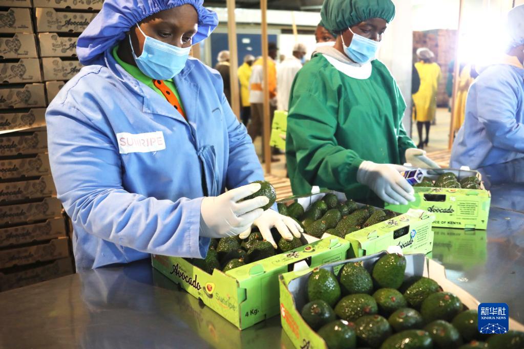 2022年8月2日,在位于肯尼亚利穆鲁镇的桑瑞普工厂,员工将牛油果装箱。桑瑞普工厂当日举行鲜食牛油果对华出口首发仪式,这是非洲鲜食牛油果首次出口中国。新华社记者 董江辉 摄
