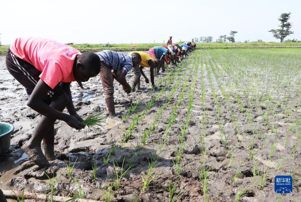 2022年10月29日,在布隆迪布班扎省基航加县,农民种植杂交水稻。新华社记者 董江辉 摄