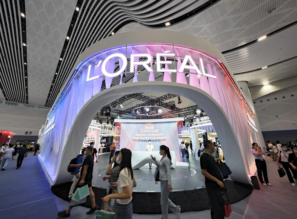 这是2022年7月26日拍摄的第二届中国国际消费品博览会上的欧莱雅集团展台。(新华社记者郭程摄)
