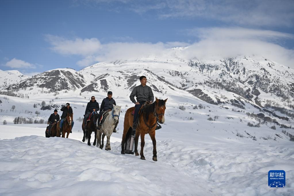3月30日,苏卡(前)和马队队员一起,巡视上山的线路。