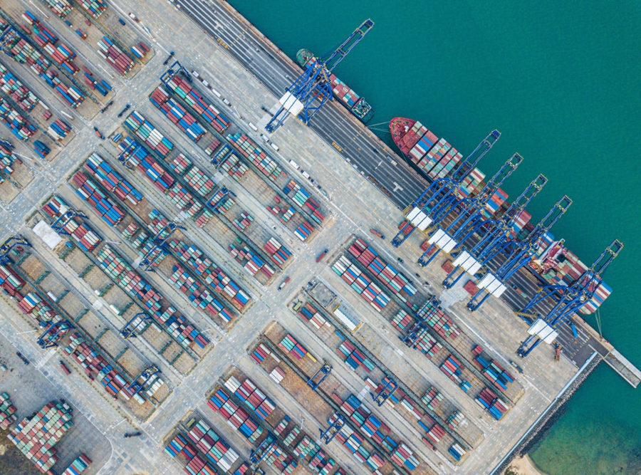 图为2月28日,在海南自贸港重点园区——洋浦经济开发区拍摄的洋浦国际集装箱码头(无人机照片)。新华社记者 蒲晓旭 摄