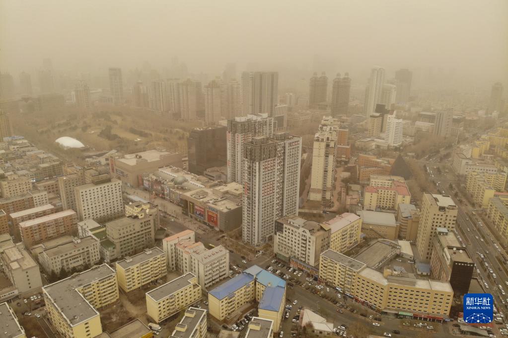 这是4月10日下午拍摄的哈尔滨市主城区一角(无人机照片)。当日,我国北方多地出现沙尘天气。新华社记者 谢剑飞 摄
