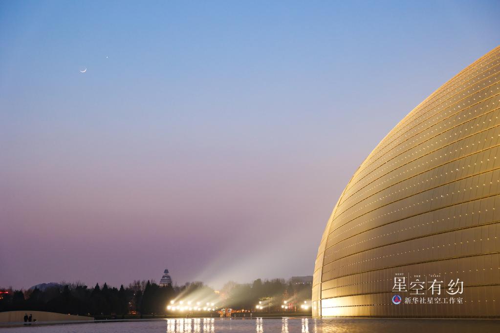 北京市天文摄影爱好者王俊峰2023年2月22日在北京西城拍摄的金星伴月。(本人供图)