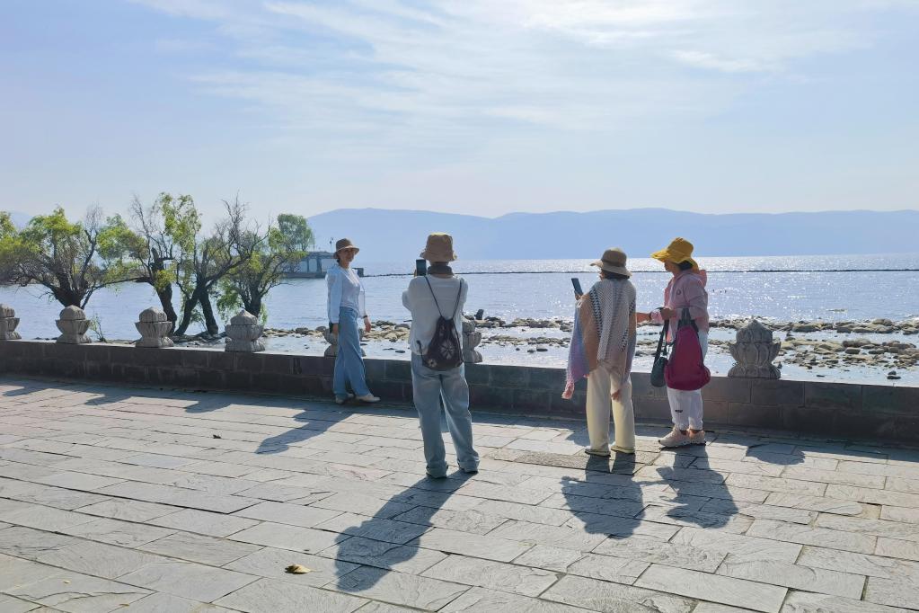 “以前可不是这个样子。”提起过往,湾桥镇古生村党支部书记何桥坤直摇头。2017年以前,廊道原址上布满沿湖而建的民房,当时房子直接建到水边,天然湖岸线遭到破坏,部分房屋的屋顶、外立面也不再是白族风格,风景全无。