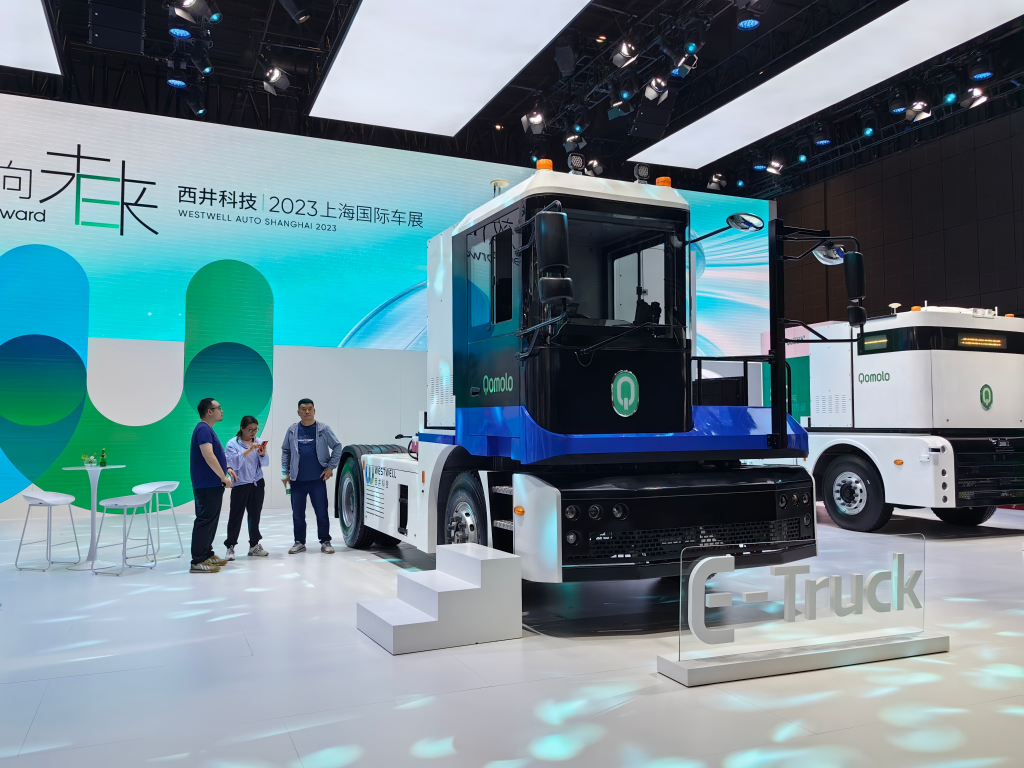 西井科技在车展上展示“可升级自动驾驶”的智能网联新能源重卡Qomolo E-Truck。新华社记者周蕊 摄