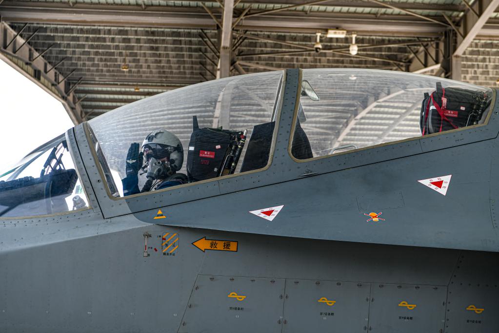 空军“清北班”飞行学员驾驶教-10飞机举手示意申请滑出(2023年4月16日摄)。李敏 摄