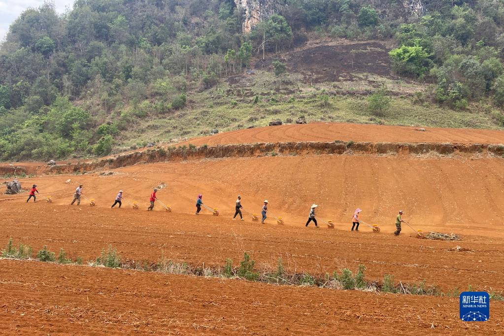 4月29日,在云南省普洱市澜沧县竹塘乡,村民开展水稻旱作。新华社记者 杨静 摄