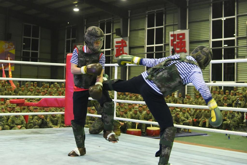 海军陆战队某旅女兵分队战士进行格斗对抗(2023年3月17日摄)。肖腾达 摄