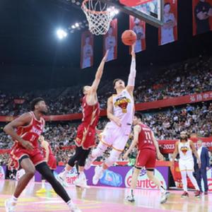4月30日,深圳队孙浩钦(中)在比赛中上篮。新华社发(彭志刚摄)