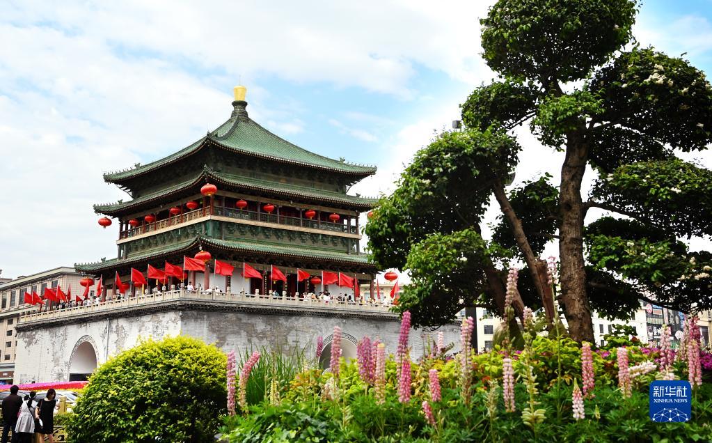 西安钟楼(5月1日摄)。