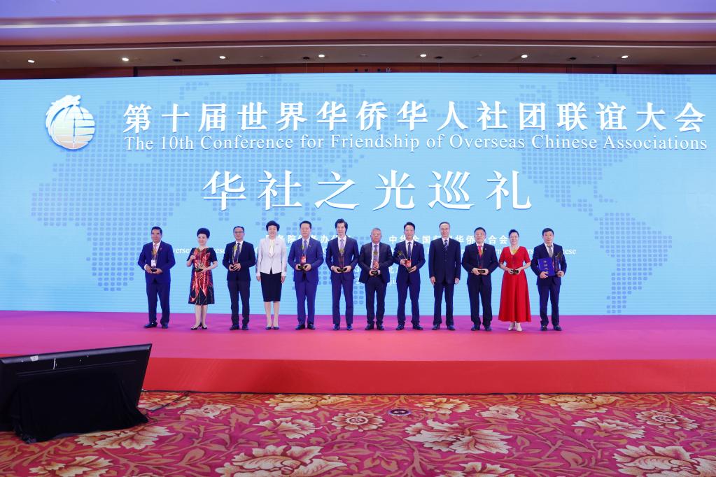 5月9日,第十届世界华侨华人社团联谊大会举行华社之光巡礼活动,10家海外侨团被授予“华社之光”荣誉。