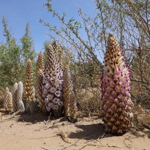 记者在四翅滨藜肉苁蓉试种基地看到,一株株四翅滨藜绿意盈盈,在其根部生长的一排排肉苁蓉破土而出,一株最多长出40多株肉苁蓉,五颜六色的肉苁蓉花竞相开放,成为一道美丽的风景。