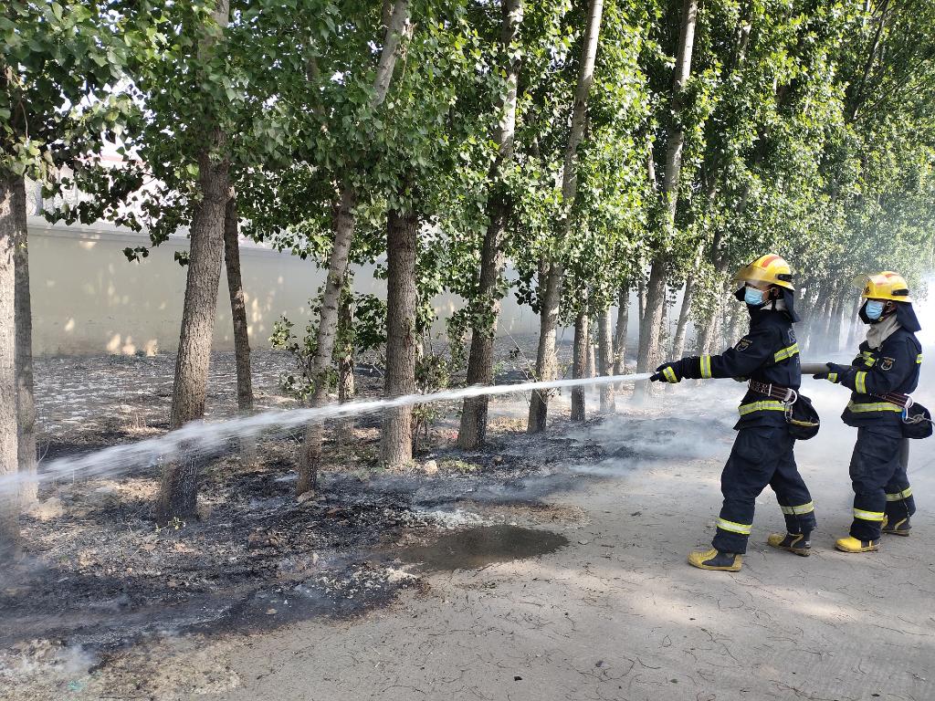 5月2日,河南省济源市消防救援支队济渎路特勤站在处置飞絮引发的火情。 张健 摄