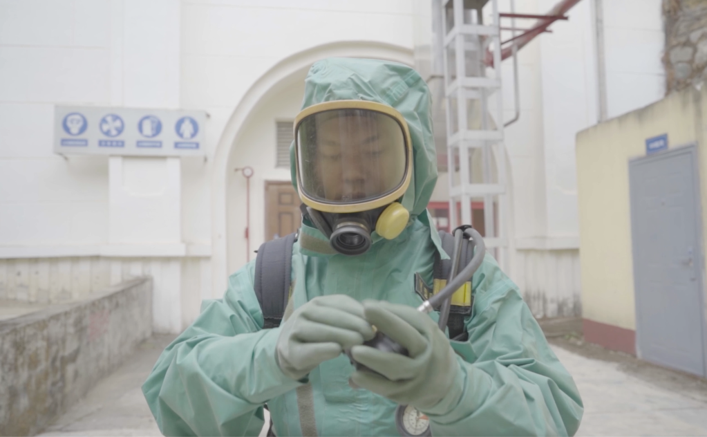 加注分队指挥员王耀萱正在穿戴防护装备。新华社记者 薛晨 摄