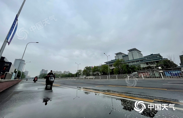 夜雨过后,北京路面湿滑。(图:中国天气网王晓)