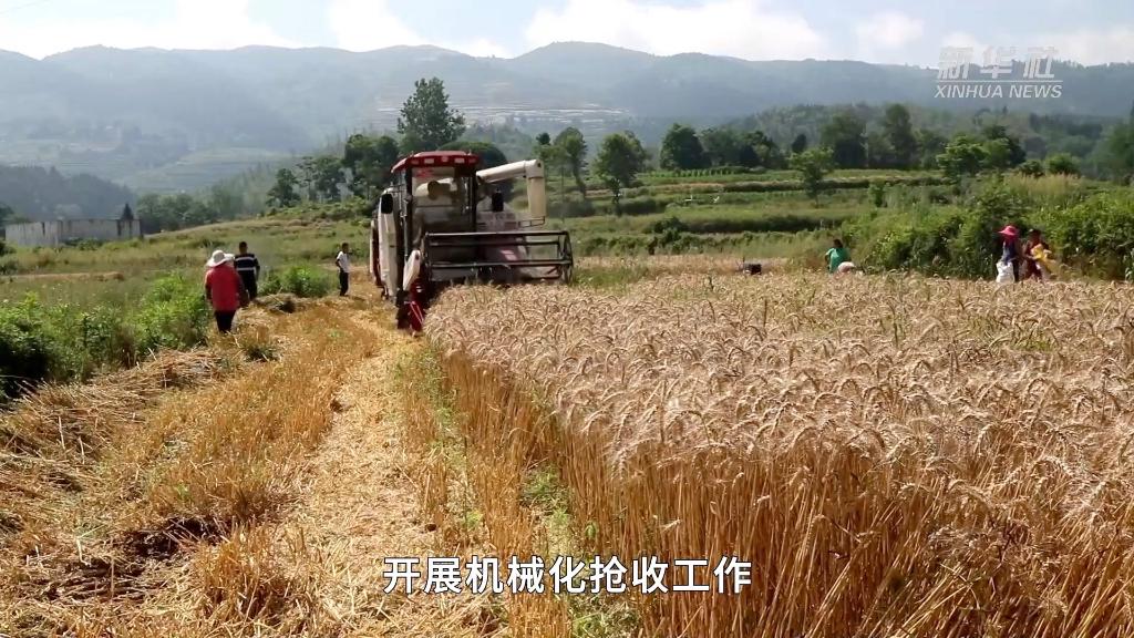 眼下,正是贵州各地冬小麦成熟收获的季节。在思南县,当地农户利用晴好天气加紧收割小麦,呈现出一派丰收繁忙的景象。依托农机专业合作社的成立,当地大力推广小麦耕、种、管、收全程机械化技术,不断提高山地农业社会化服务能力,确保小麦及时收获,夏种不误农时。