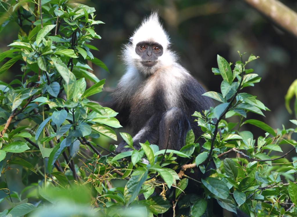 这是2023年5月18日在广西岜盆自然保护区拍摄的白头叶猴。新华社记者 周华 摄