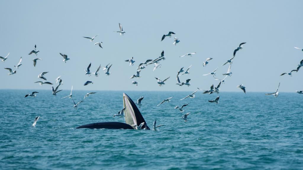 2021年1月15日,一头布氏鲸在涠洲岛海域捕食。