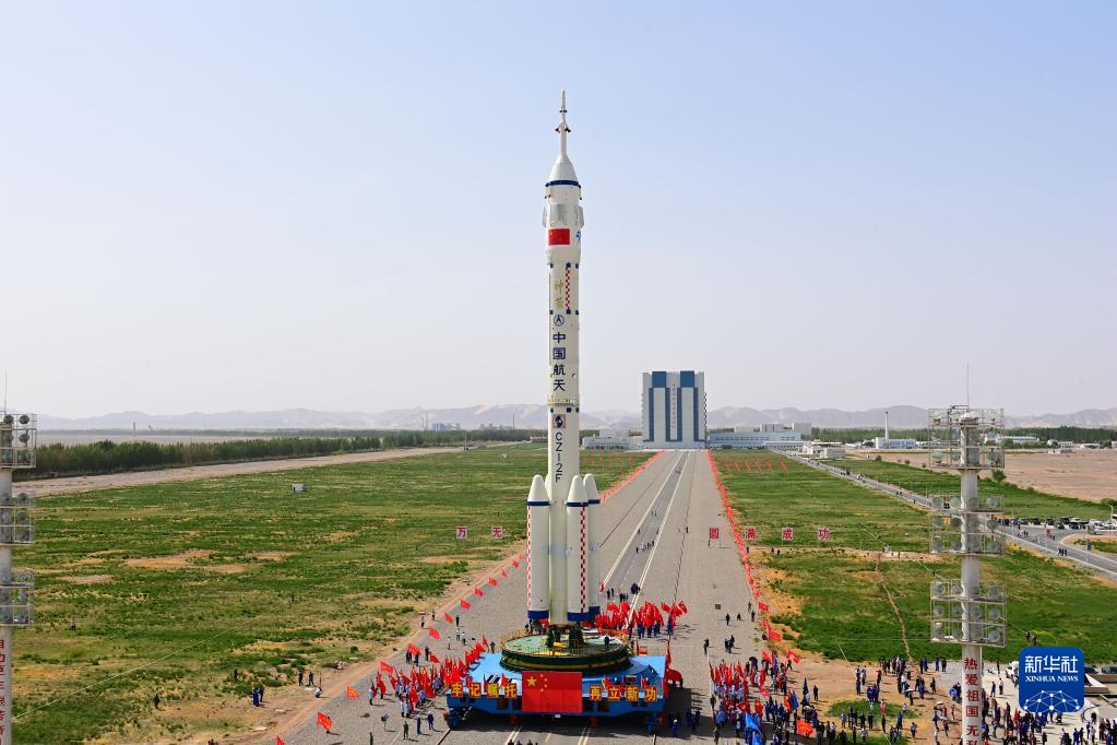 5月22日,神舟十六号载人飞船与长征二号F遥十六运载火箭组合体准备转往发射场。新华社发(汪江波 摄)