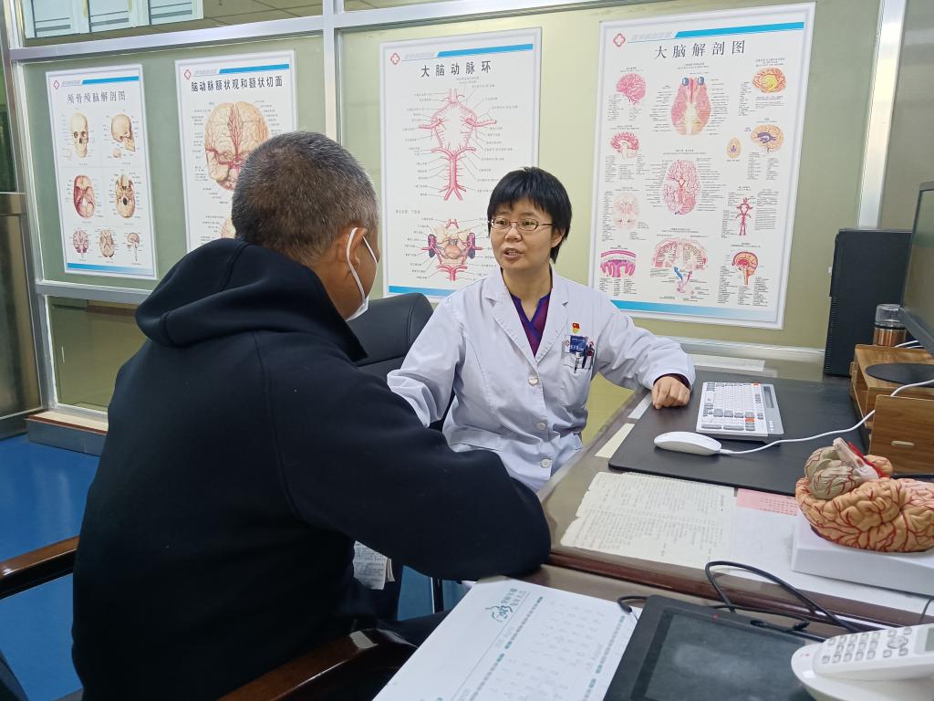 5月24日,青海省人民医院神经内科主任医师吉维忠(左)在接诊。(受访者供图)