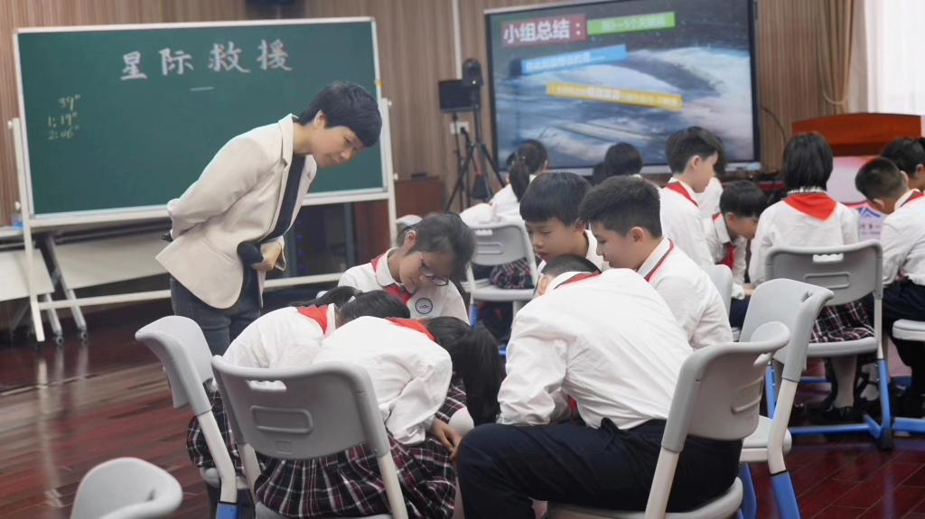 图为广州市天河第一小学心理教师肖冬梅在给学生上心理健康课。(李银晖 摄)
