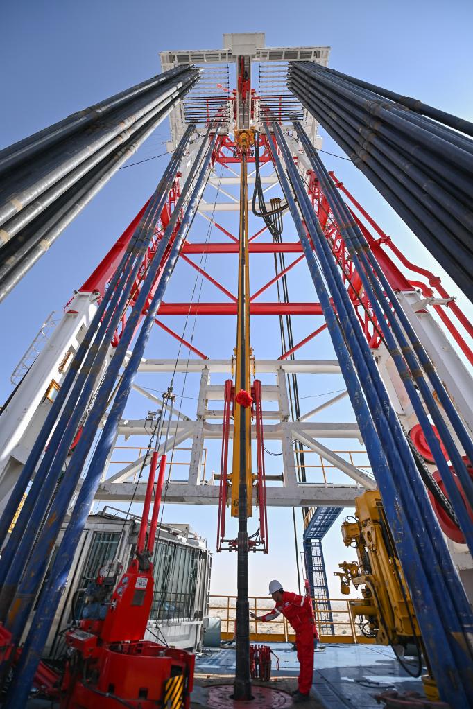 5月30日,深地塔科1井,工程师在检查钻机运行状况。新华社记者 李响 摄