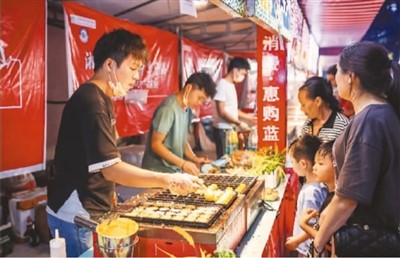 近期,湖南省永州市蓝山县开展促消费活动,拓展夜间消费业态,完善夜市配套服务,增添县城“烟火气”,推动“夜经济”持续升温。图为蓝山县三蓝广场夜市一景。彭 华摄(人民视觉)
